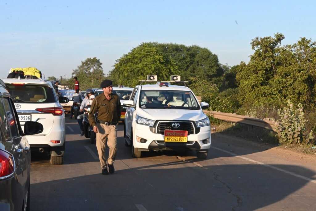 48 घंटे से फंसे हैं वाहन, पुलिस अनाउंसमेंट से कर रही लौटने की अपील