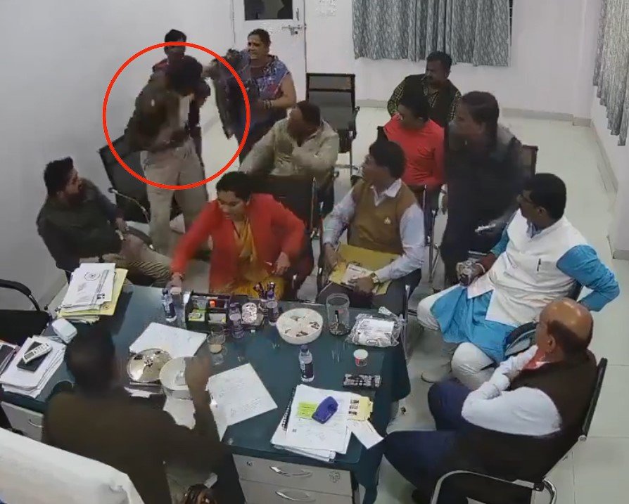 सिंगरौली। जिले से एक वीडियो वायरल हो रहा है, जिसमें एक सहायक उप निरीक्षक (एएसआई) ने पार्षद पति द्वारा धमकी मिलने के बाद अपनी वर्दी फाड़ दी। घटना कोतवाली थाना परिसर में टीआई (थाना प्रभारी) के चेंबर में हुई, जहां नगर निगम के अधिकारी, पुलिस विभाग के अधिकारी और कुछ नेता मौजूद थे। वीडियो के सामने आते ही पुलिस विभाग और राजनीतिक गलियारों में हड़कंप मच गया है।